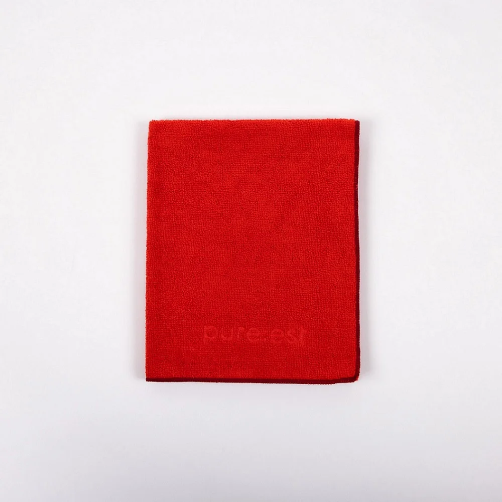 Övrigt: Alla mikrofiberdukar från Pure:est är fria från kemikalier som ökar uppsugningsförmågan. Logotypen försvinner från mikrofibertrasan efter några tvättar. Det är helt normalt