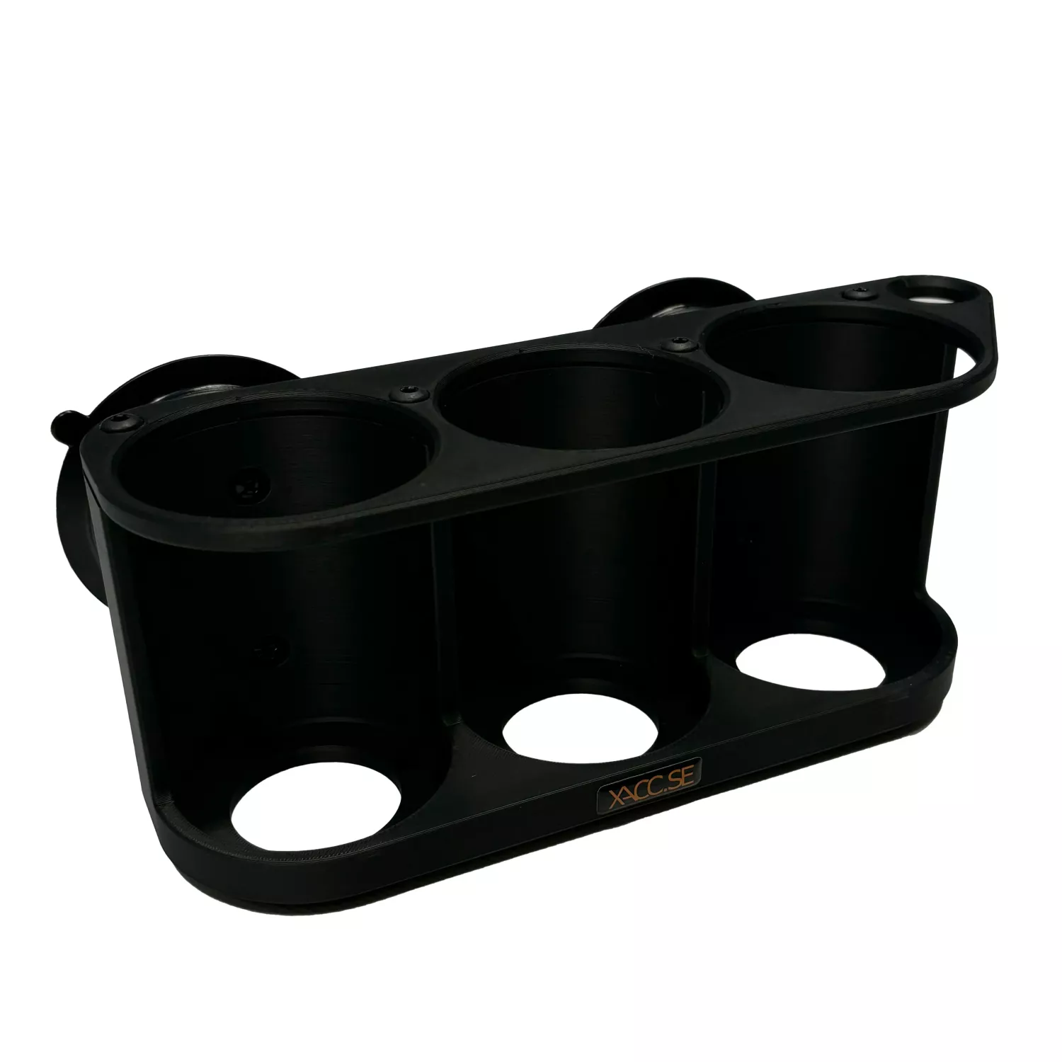 Flaskhållare i plast som är tillverkad med 3D-print teknik.