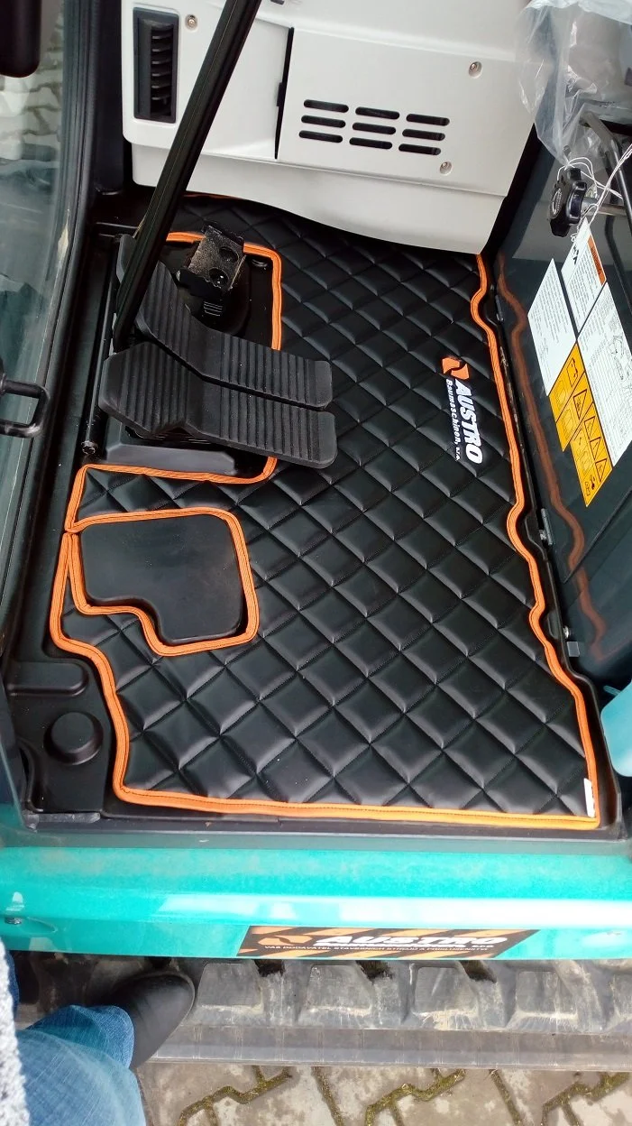 Golvmatta till Kobelco SK45SRX. Matta med väldigt fin kvalité det är en diamantmönstrad matta med stoppning, enligt bild.