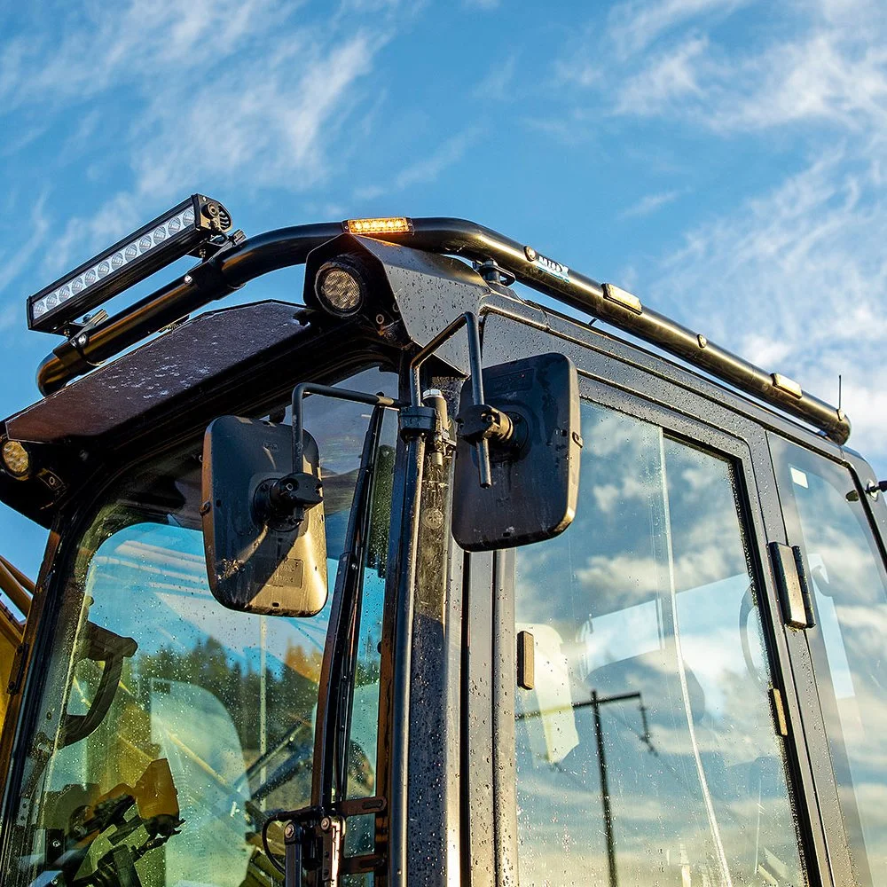 Designade modellanpassade aluminiumbågar för entreprenadmaskiner och lantbruksmaskiner som kan monteras på motvikter, huvar och tak. Bågarna finns i flera olika varianter med eller utan blixtljus, positionsljus eller klämfästen för arbetsbelysning. Alla bågar med belysning har fördraget elkablage som räcker till maskinens hytt. Levereras komplett med fästdetaljer för ett lätt och snyggt montage. Bågarna kan fås annodiserade eller lackade.