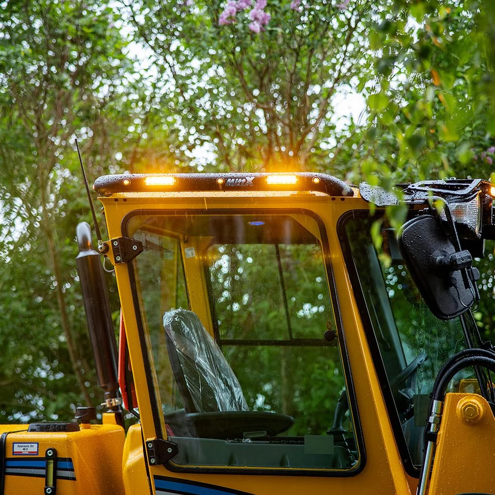 Designade modellanpassade aluminiumbågar för entreprenadmaskiner och lantbruksmaskiner som kan monteras på motvikter, huvar och tak. Bågarna finns i flera olika varianter med eller utan blixtljus, positionsljus eller klämfästen för arbetsbelysning. Alla bågar med belysning har fördraget elkablage som räcker till maskinens hytt. Levereras komplett med fästdetaljer för ett lätt och snyggt montage. Bågarna kan fås annodiserade eller lackade.