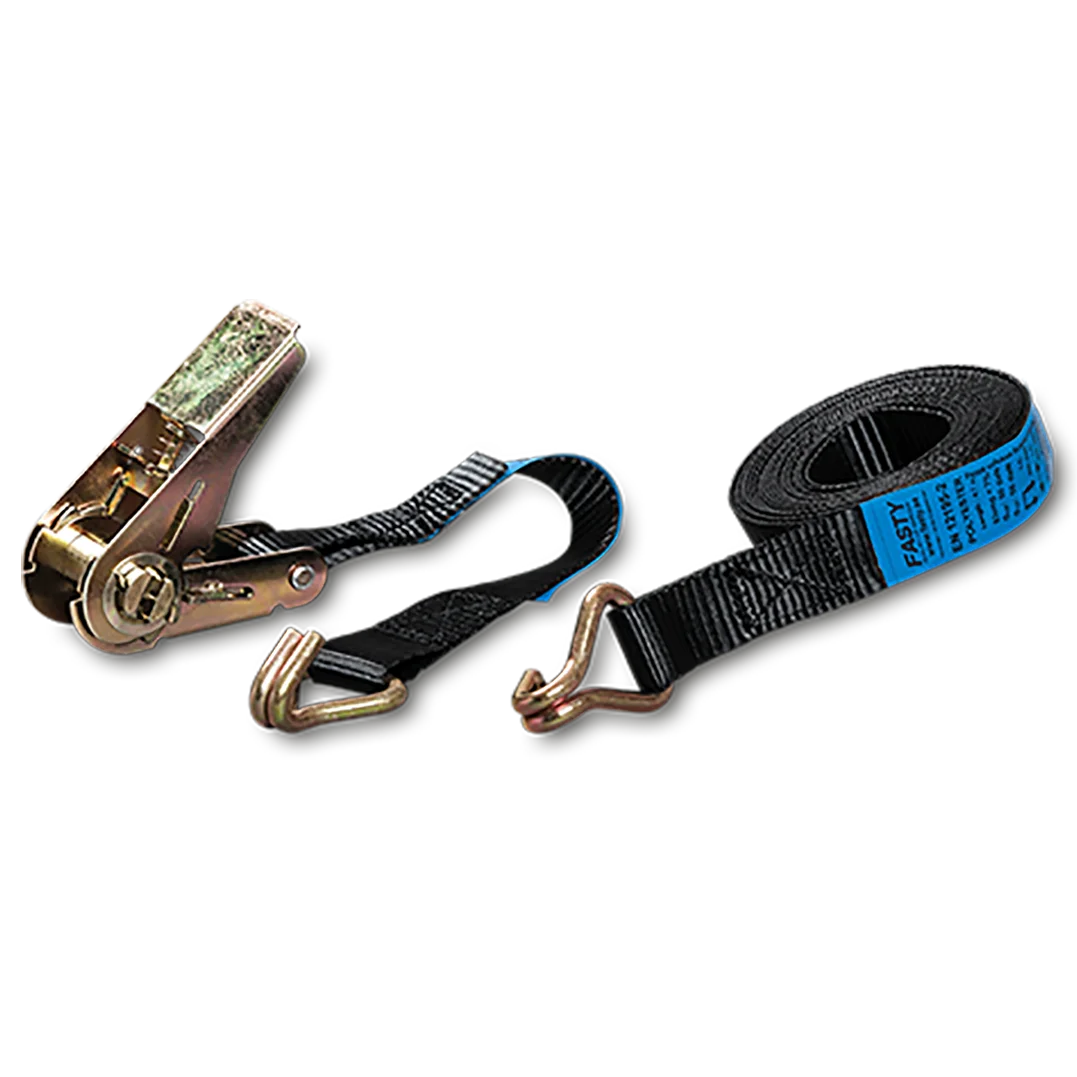 Tvådelat spännband med lastspännare för lätta surrningar tillverkad enligt standard EN 12195-2.