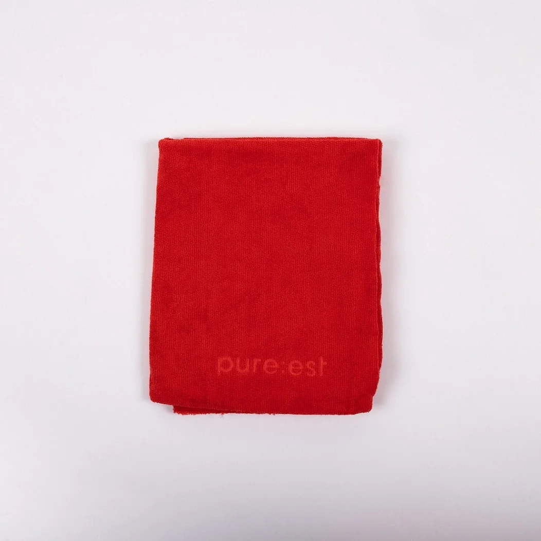 Övrigt: Alla mikrofiberdukar från Pure:est är fria från kemikalier som ökar uppsugningsförmågan. Logotypen försvinner från mikrofibertrasan efter några tvättar. Det är helt normalt